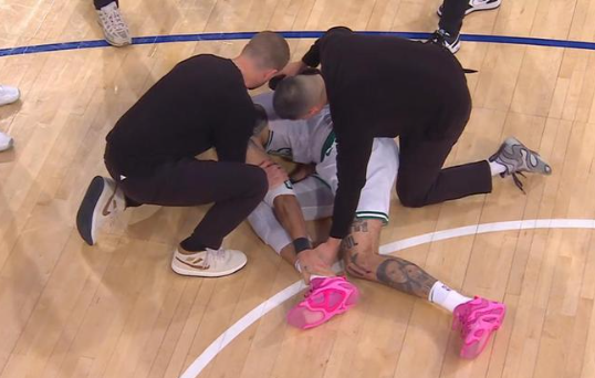 凯尔特人队再叫暂停,塔图姆失误,阿奴诺比快攻扣篮,尼克斯队领先9分,对绿军更糟糕的是塔图姆手捂着左脚踝,痛苦地倒在地板上。暂停后塔图姆被搀扶离场,随后坐上轮椅,布朗三分打铁,布伦森右翼三分命中,尼克斯队以116-104领先。布朗跑投打进,阿奴诺比突破扣篮,普理查德连追5分无济于事,凯尔特人队以113-121落败。