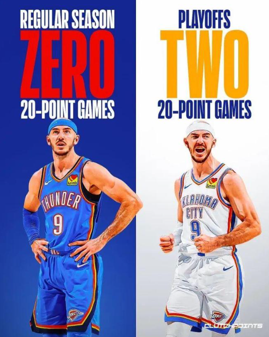 雷霆队的亚历山大得到35分和4次助攻,威廉姆斯得到24分、5个篮板和7次助攻,霍姆格伦得到13分和11个篮板,卡鲁索得到11分,哈滕施泰因得到10分和7个篮板。掘金队的约基奇得到20分、9个篮板和7次助攻,布劳恩得到19分和4个篮板,穆雷得到13分,戈登得到8分和11个篮板。