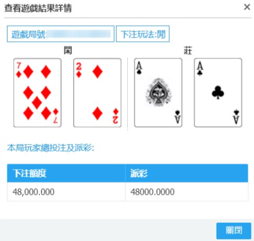若二珠路中出现“闲闲”,则在下一局选择下注“庄”。